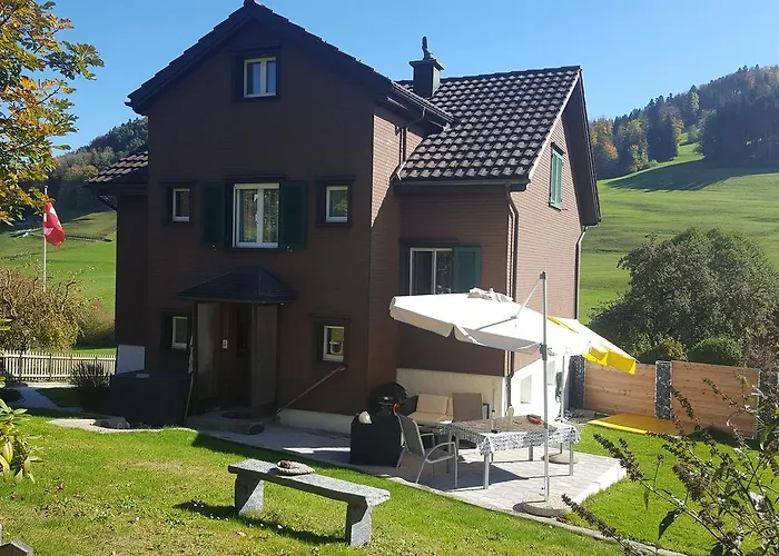 Featuring views of the garden, the 45 m² Ferienwohnung Eisenring In Idyllischer Umgebung Gahwil is located about 25 minutes' walk from Burgstelle Alt-Toggenburg Castle Ruin. Providing a sauna, this 2-bedroom apartment ensures a more relaxing stay.